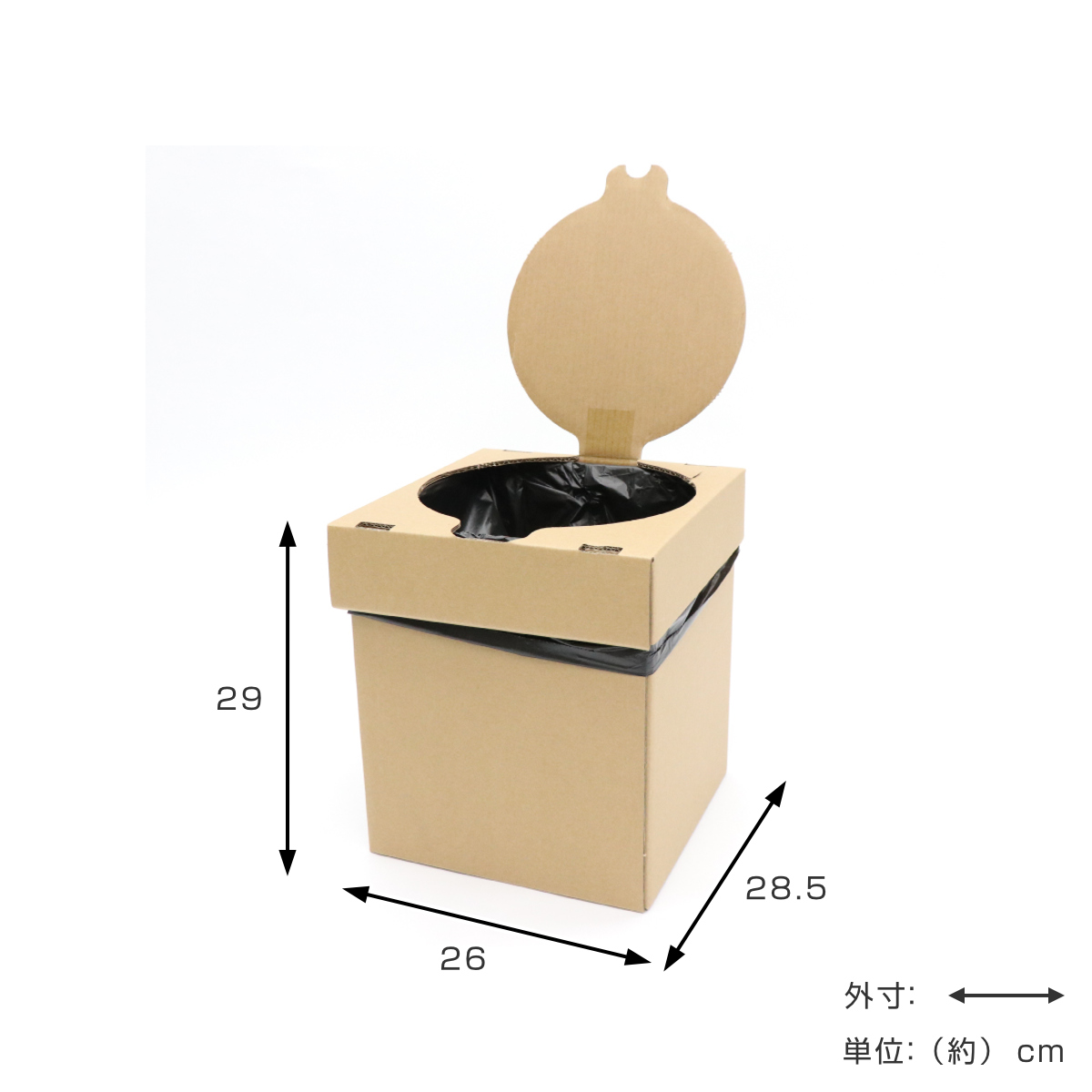 | 材質 | 本体、便座:ダンボール 処理袋:黒ポリエチレン 凝固剤:高分子ポリアクリレート |