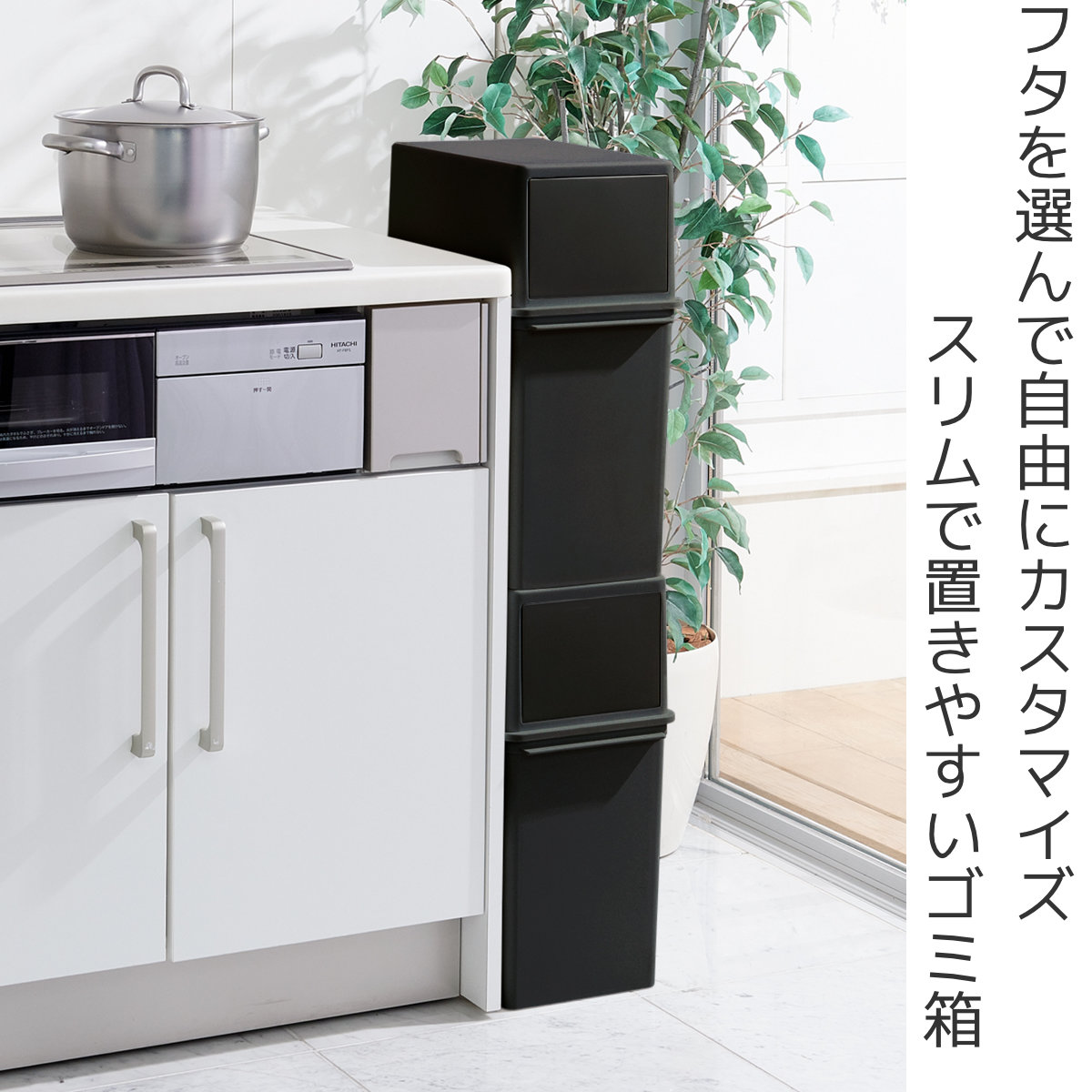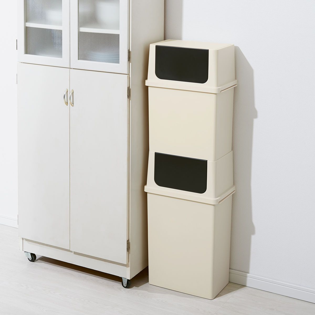 複数を並べたり、積み重ねて使うことも可能です。分別用のゴミ箱としてもすっきり設置できます。