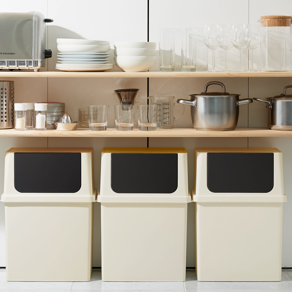 ビンや缶などのリサイクルゴミの分別にちょうどいいサイズです。