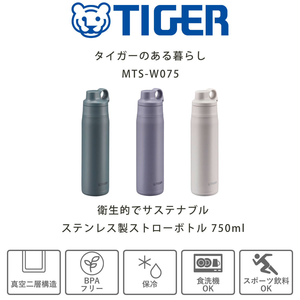 タイガー 水筒 750ml 真空断熱ボトル ストローマグ 保冷専用