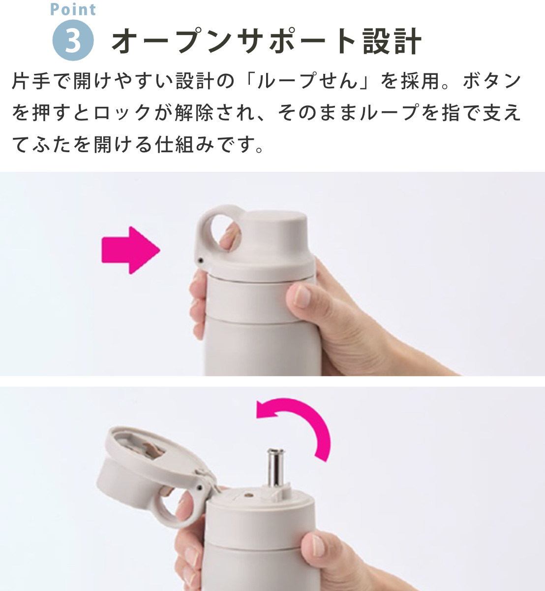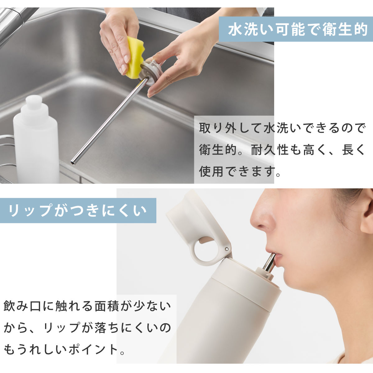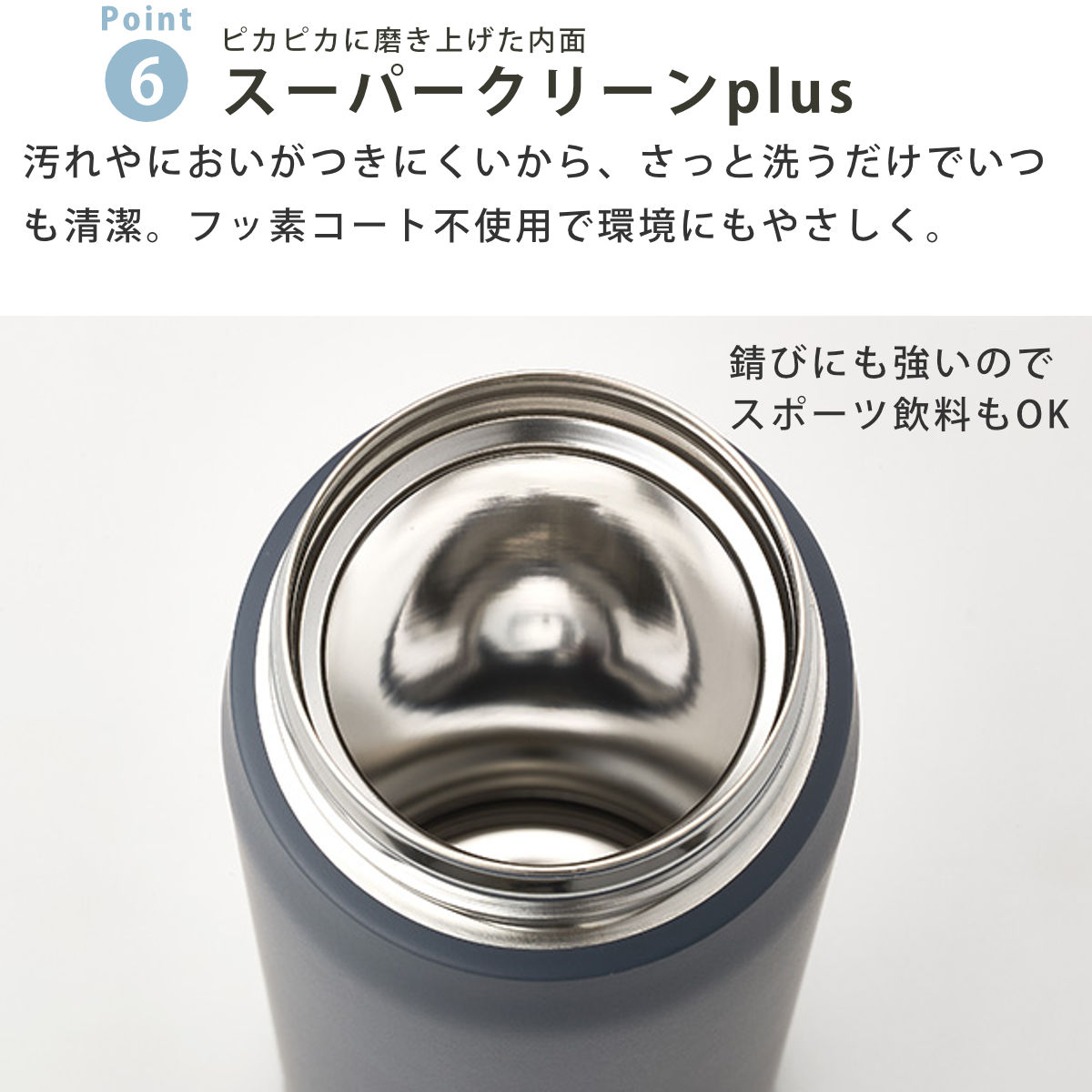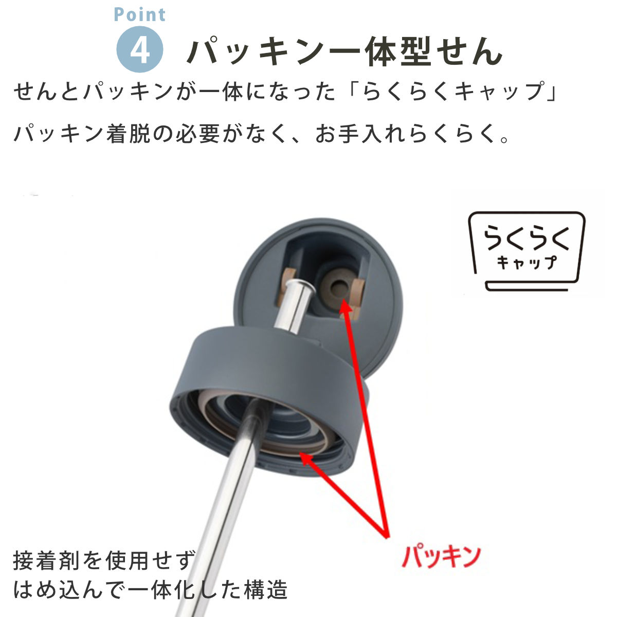 | 材質 | 内びん、胴部、ストロー:ステンレス鋼 せんセット(ストロー除く):ポリプロピレン パッキン部:シリコーンゴム |