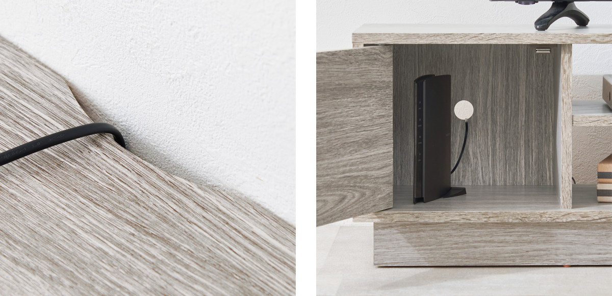 コードは背面から通せる設計です。目につかないところにコードを隠して見た目を損なわず、すっきりとお使いいただけます。