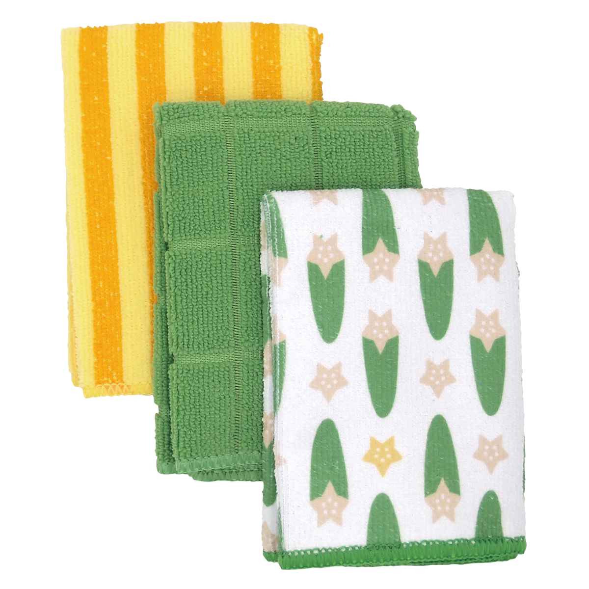 かわいい野菜モチーフがキッチンを明るくしてくれるマイクロファイバータオルです。デザイン違いの3枚セットで、用途や気分に合わせて使い分けられます。極細繊維が水分をすばやく吸い取り、拭き取りもスムーズにしてくれます。