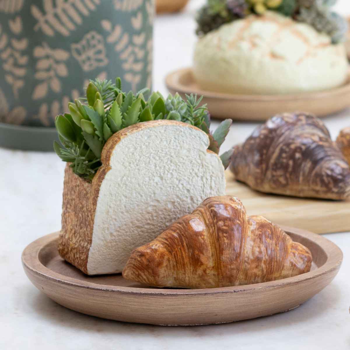 同シリーズには、植木鉢タイプもあります。複数個並べれば、自分だけの小さなパン屋さんのような楽しい空間が広がります。存在感があるのでカフェやショップのディスプレイにもおすすめです。