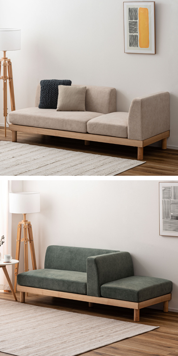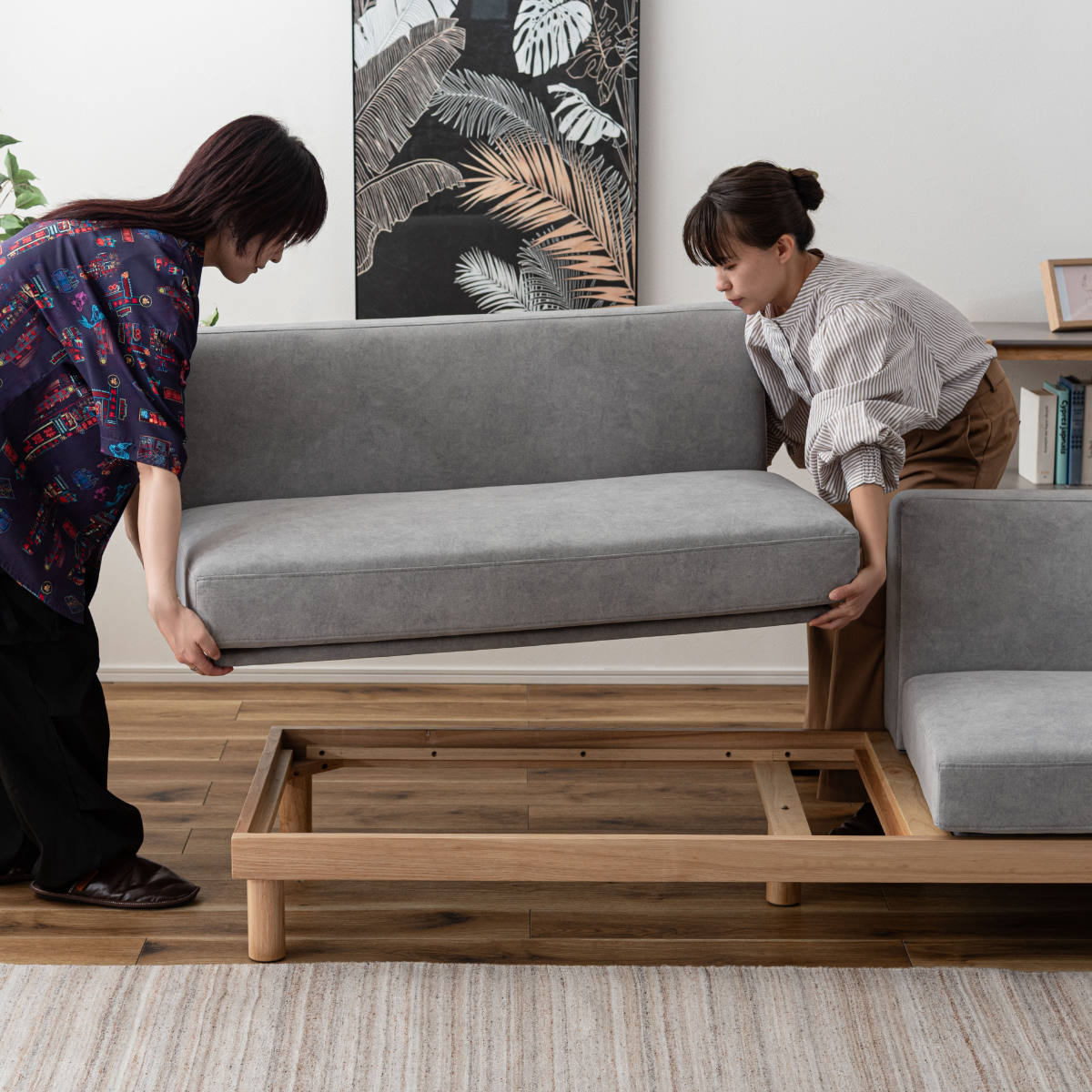 座面を外して分けたり入れ替えたりできる設計で、レイアウトは自由自在。ライフスタイルやお部屋の広さに合わせて、使い方を変えられます。