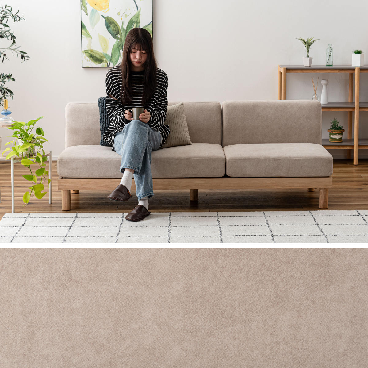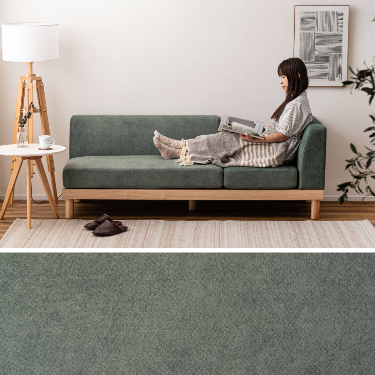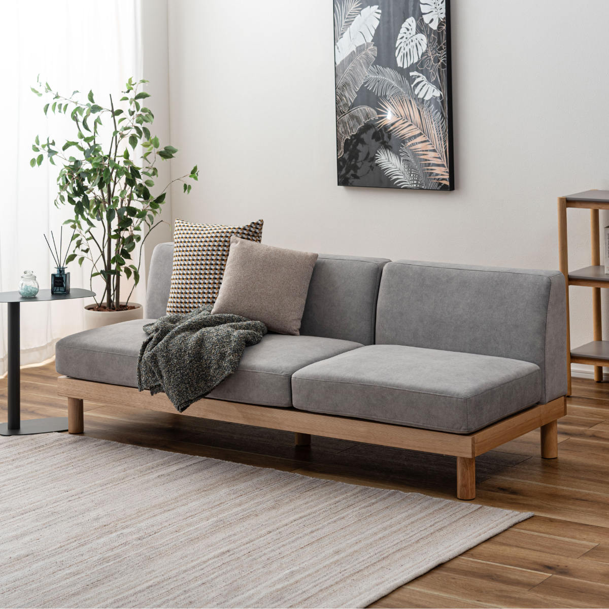 あたたかみのある天然木と、落ち着いたファブリックの組み合わせがナチュラルな雰囲気のソファ。ナチュラルからモダンまで、幅広いインテリアに調和します。