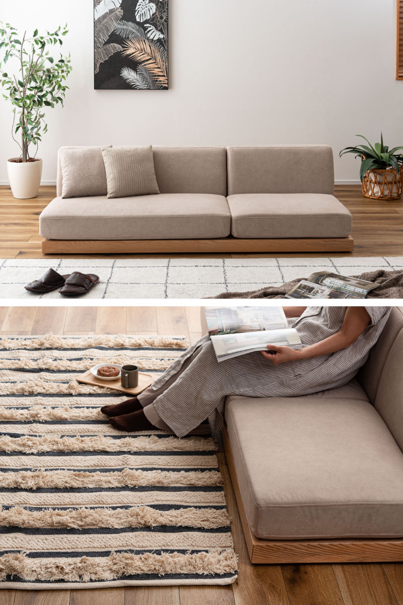 脚は取り外し可能で、ロースタイルでも使用できます。お部屋を広く見せたいときや、床に近い暮らしにもぴったり。空間やライフスタイルに合わせて、自由に使い分けられます。