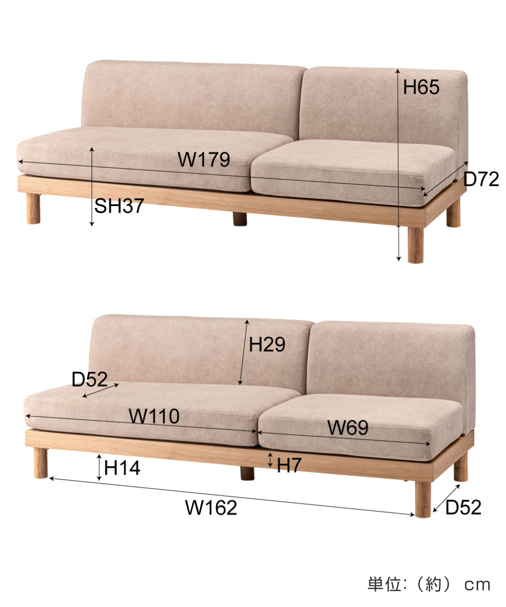 | サイズ | 約 幅179×奥行72×高さ65(cm) 座面高:約 37(cm) |