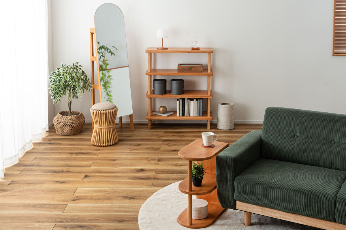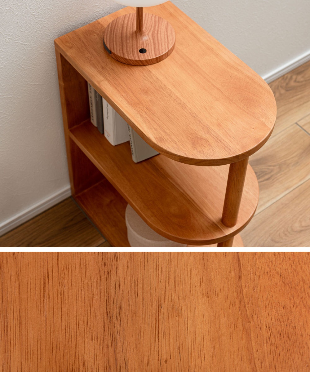 サイドテーブルとしての実用性はもちろん、下段は収納やディスプレイラックとして活用できます。よく使うものを手元に置きながら、お気に入りを飾る楽しさも広がります。