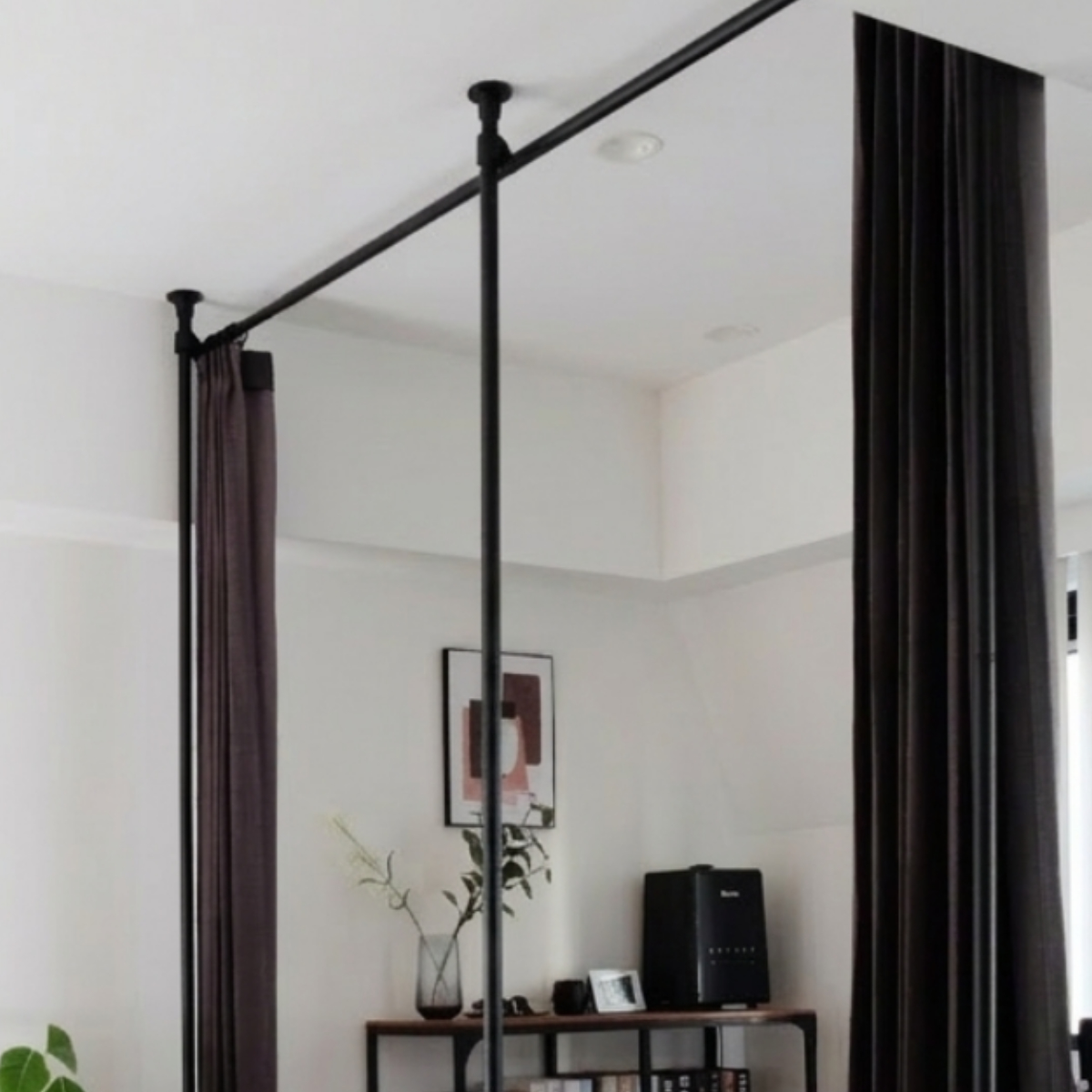 ●強力な縦ポールに横ポールを組み合わせることで、壁のない場所でもカーテンレールを設置できます。