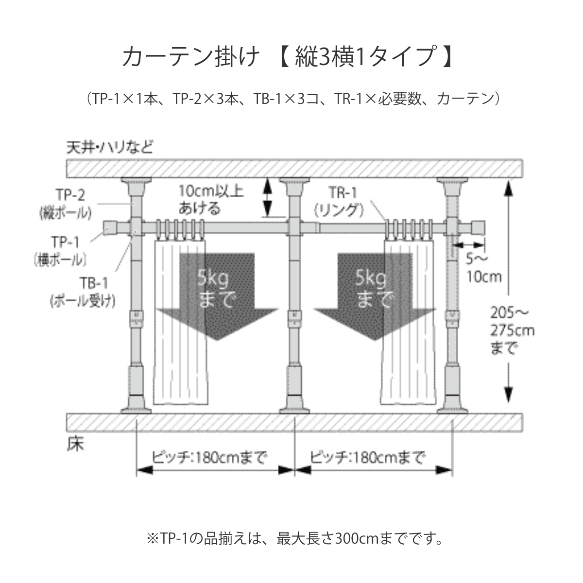 | 耐荷重 | カーテン重量:合計10kgまで |