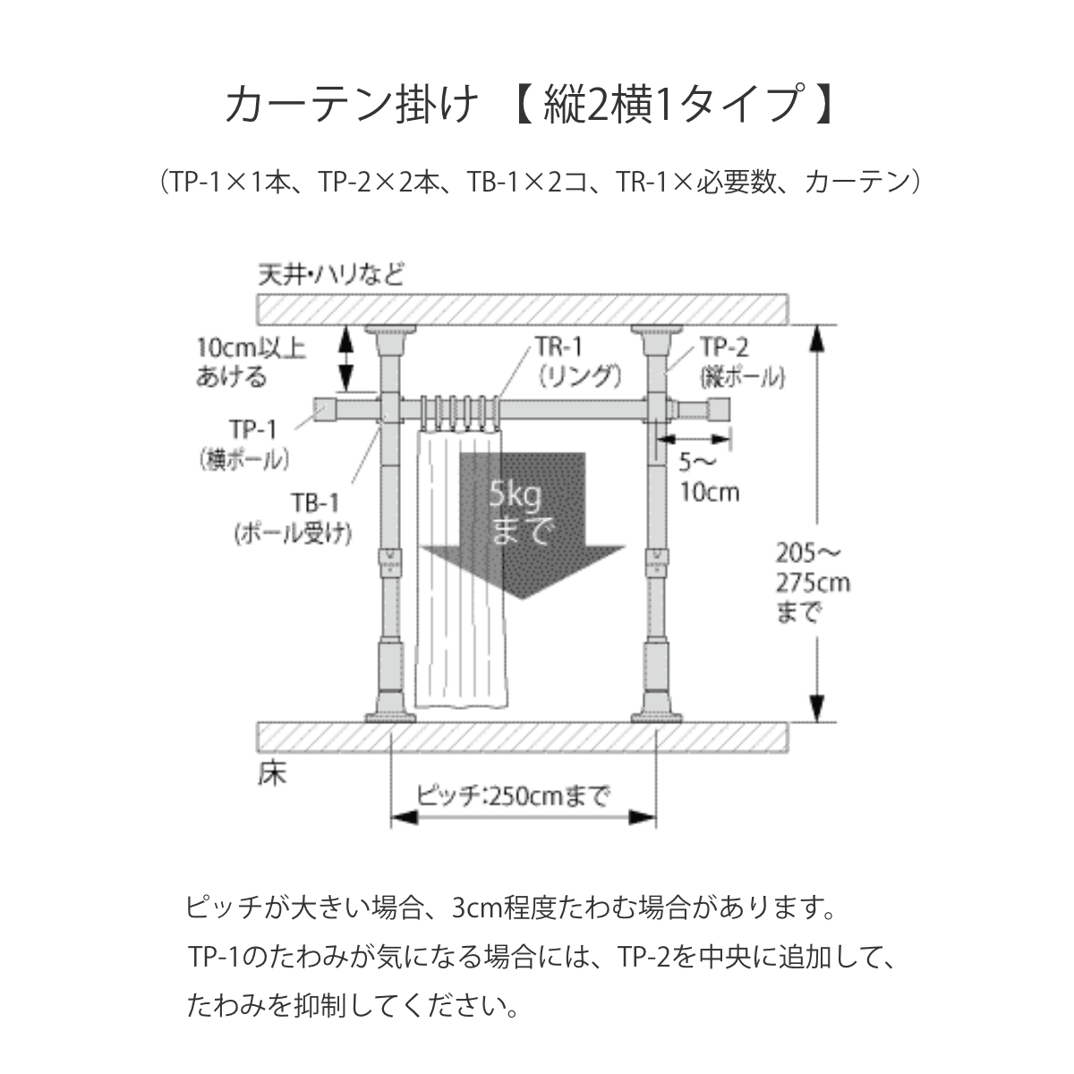 | 耐荷重 | カーテン重量:合計5kgまで |