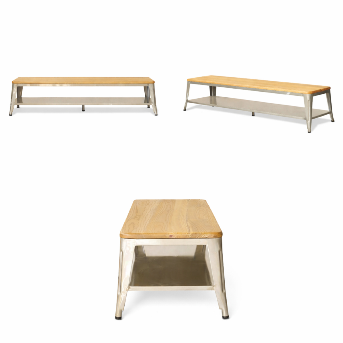 自然の温もりと、無機質な美しさが出会った一台です。無垢材のやさしい木目が空間にぬくもりを添え、スチールフレームが全体を引き締めることで、洗練されたインダストリアルデザインを実現しています。