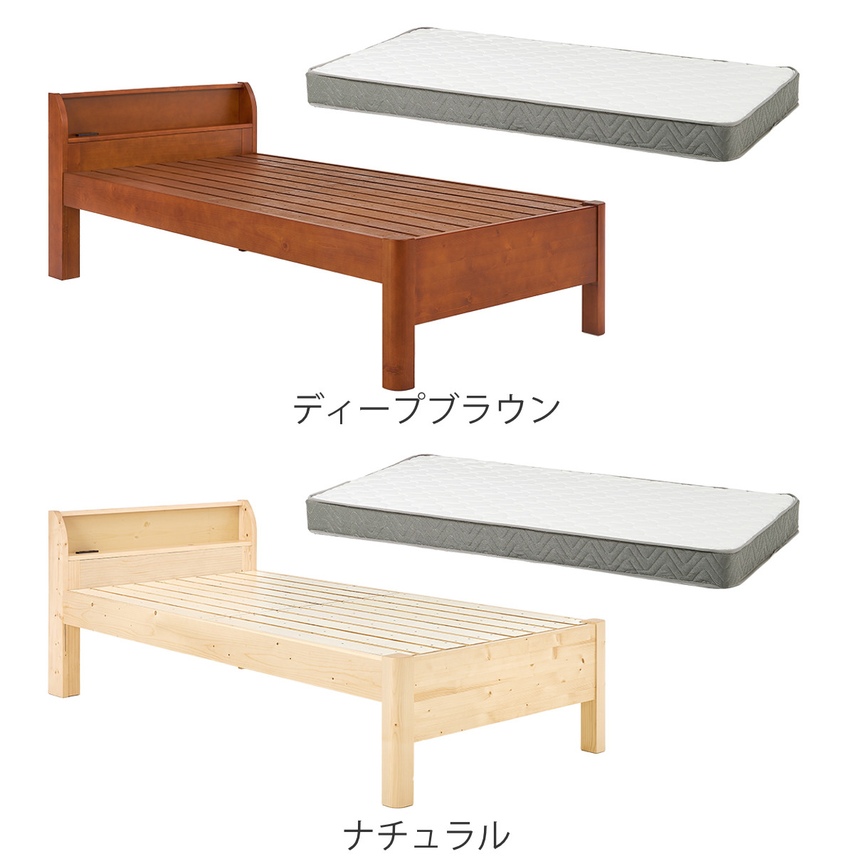 3分組立ベッド シングル ボンネルコイルマットレス付 宮棚 2口コンセント付 高耐荷重