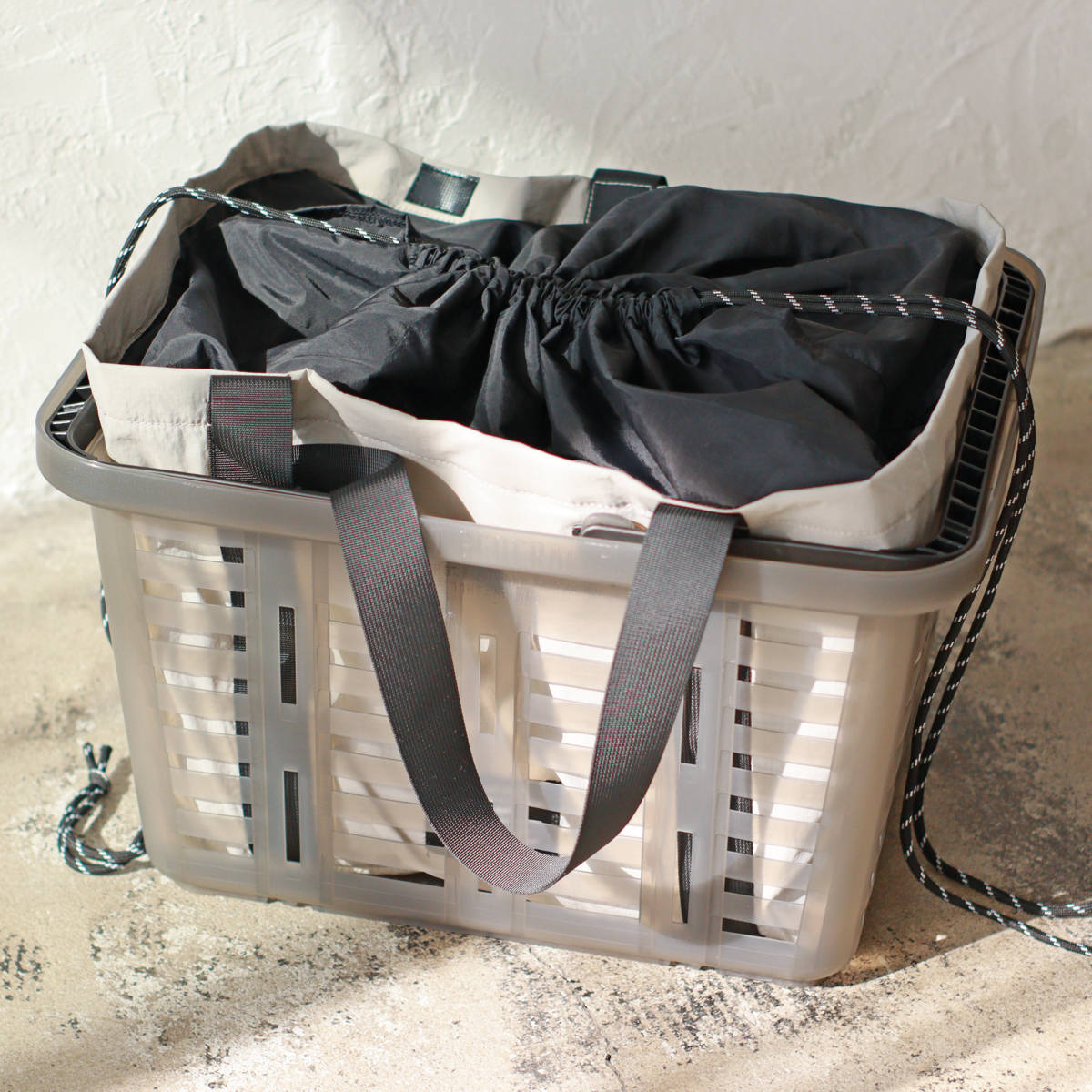 レジバスケットにセットできる、使い勝手の良いクーラートートバッグです。会計時にセットするだけで、面倒な詰め替えの手間をへらせます。