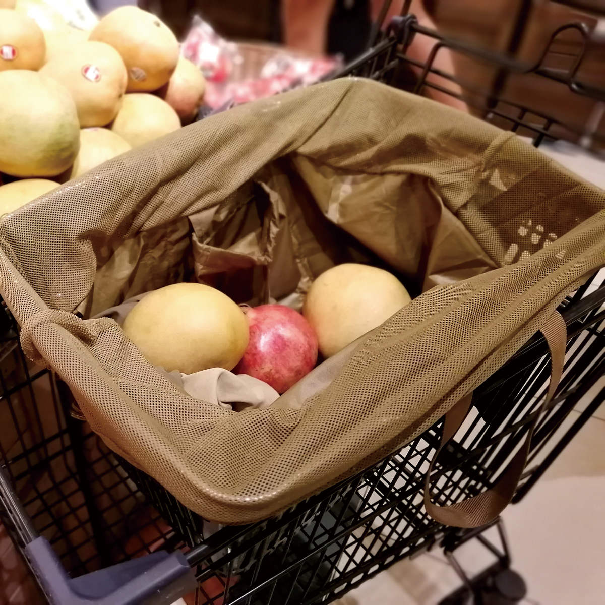 レジバスケットにセットできる、使い勝手の良いエコバッグです。会計時にセットするだけで、面倒な詰め替えの手間を減らせます。