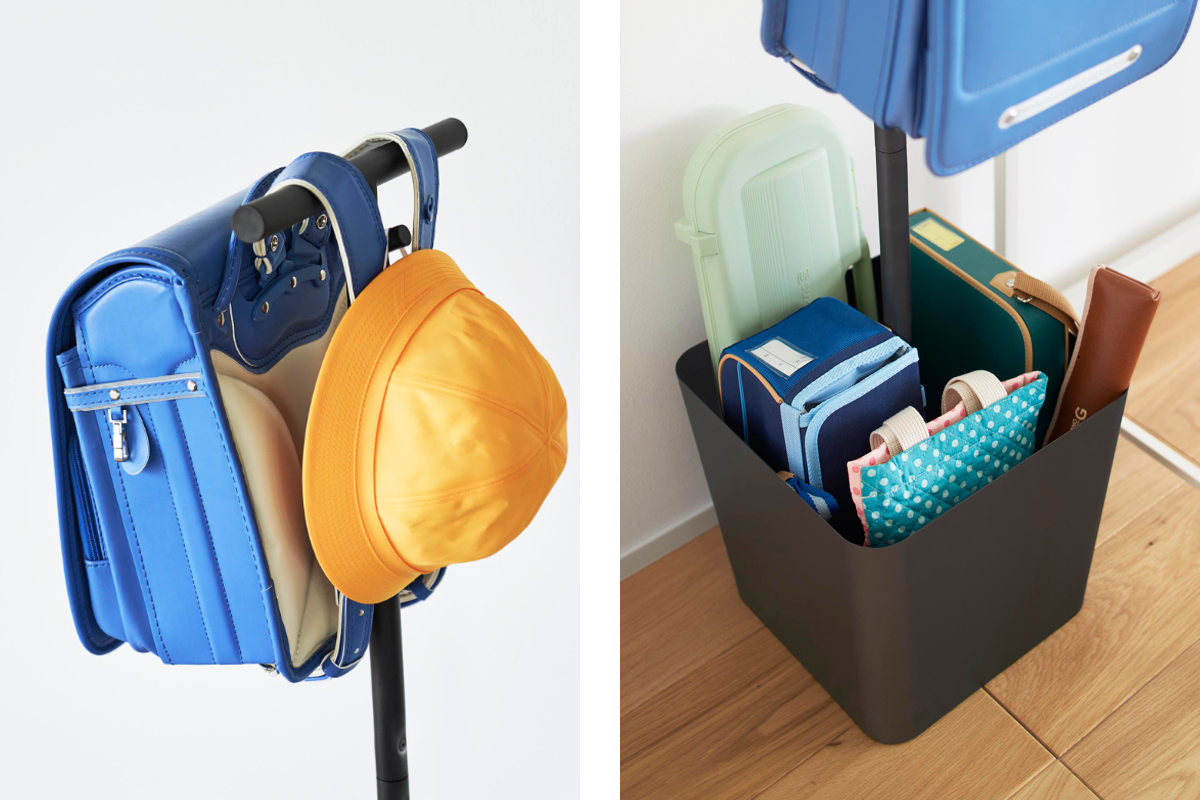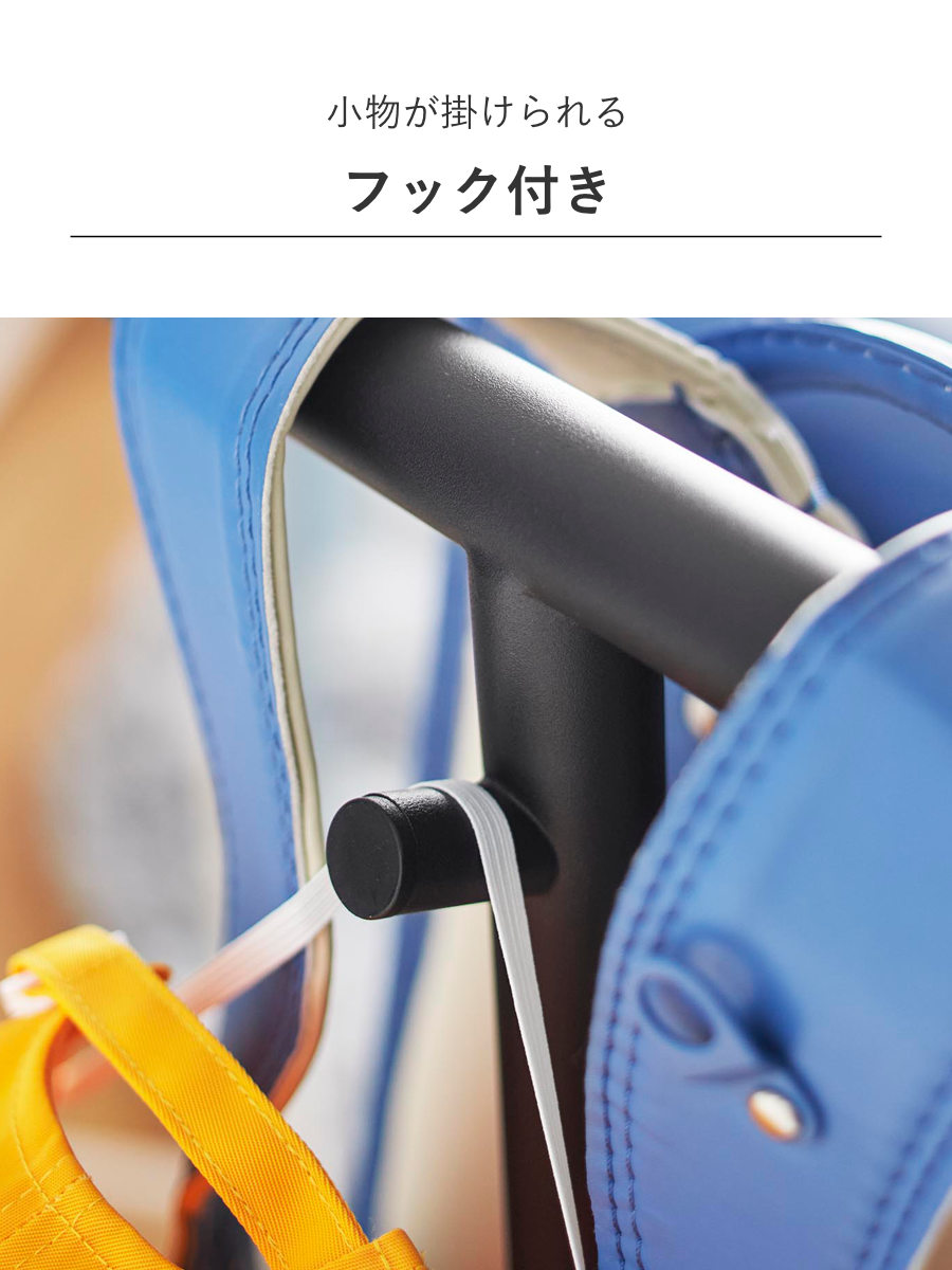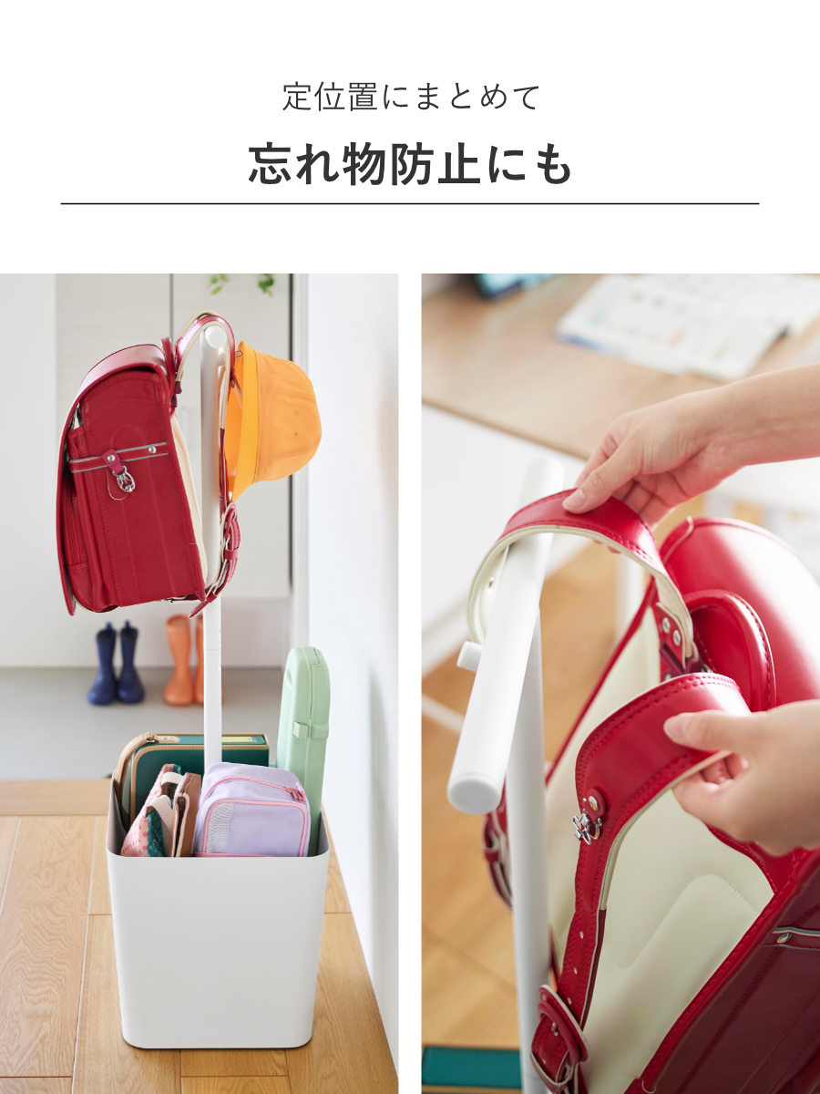通学や習い事に必要な物を定位置にまとめておけるので、ひと目で分かりやすく、忘れ物防止にも役立ちます。高さは約1mでお子さまでもランドセルを掛けやすく、1人で翌日の準備がスムーズにできます。