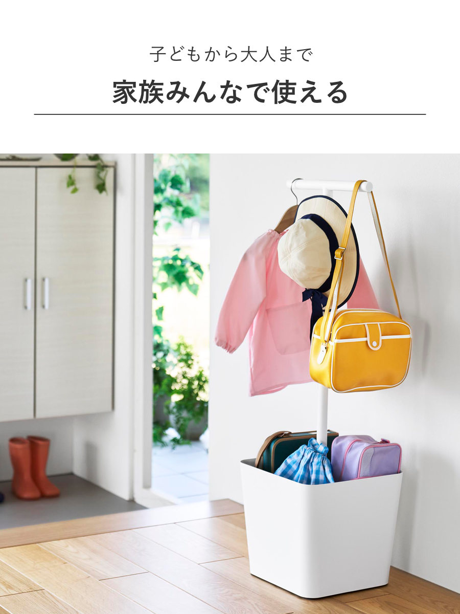 幼児期には、園児の制服や帽子掛けとして、学生期には、ランドセルや習い事の収納として、大きくなるとスーツやジャケットなどのコートハンガーとして幅広く活用できます。どんな部屋にも置きやすいシンプルなデザインで、お子さまが成長しても永く使うことができます。