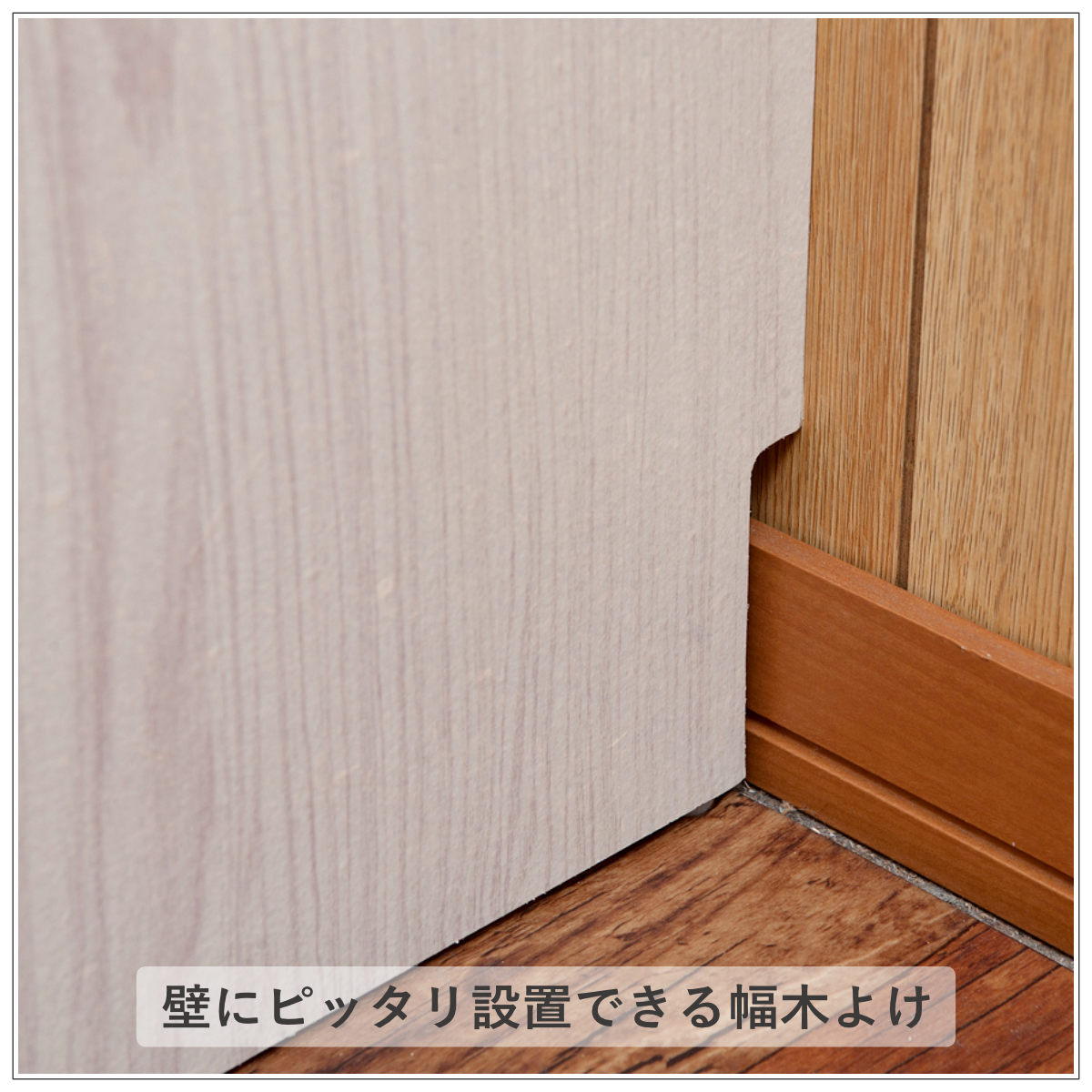 背面下は幅木よけ加工を施しており、壁にぴったりと設置できるつくりになっています。