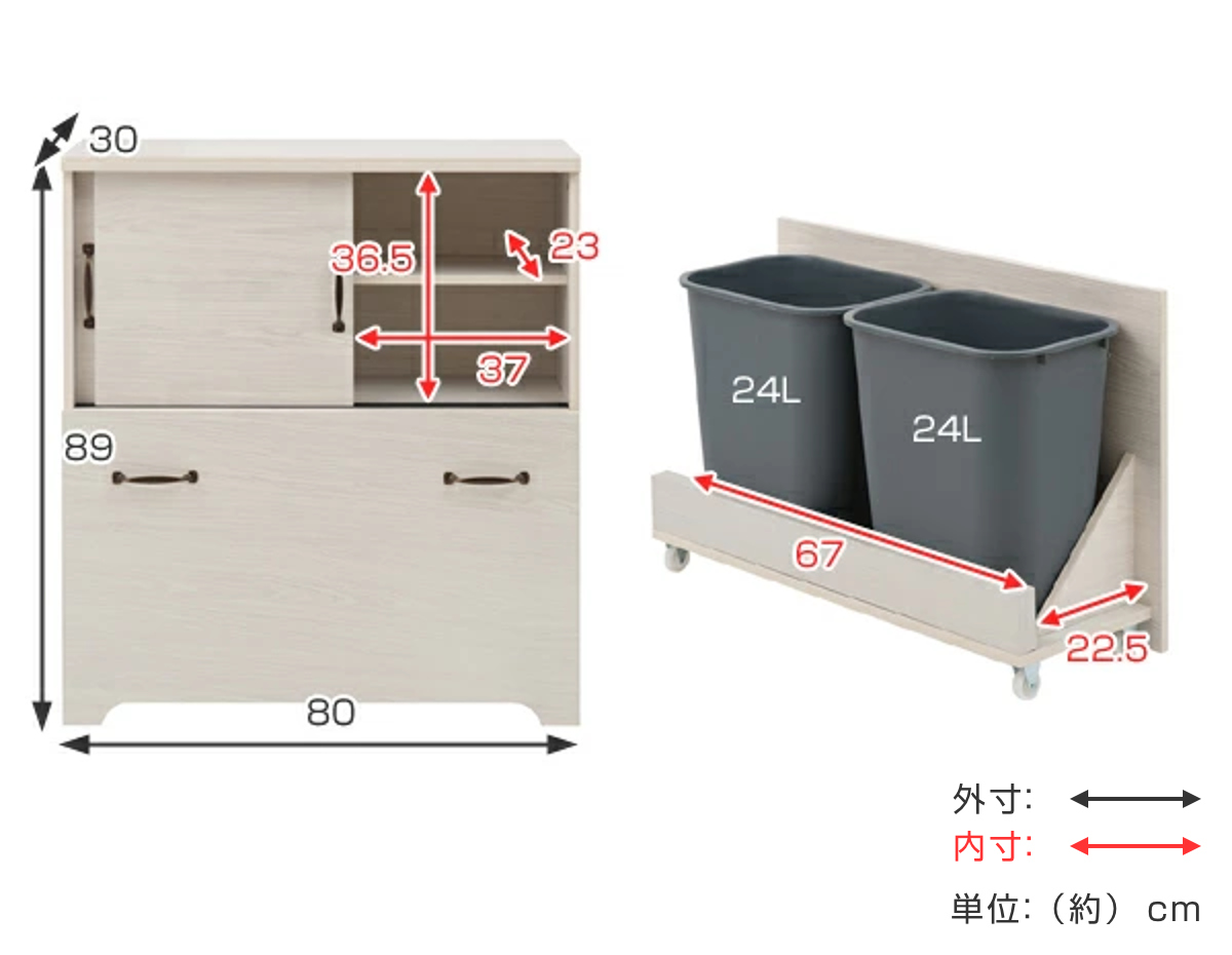 | 内容量 | 1台 付属品:ペール2個、可動棚2枚 |