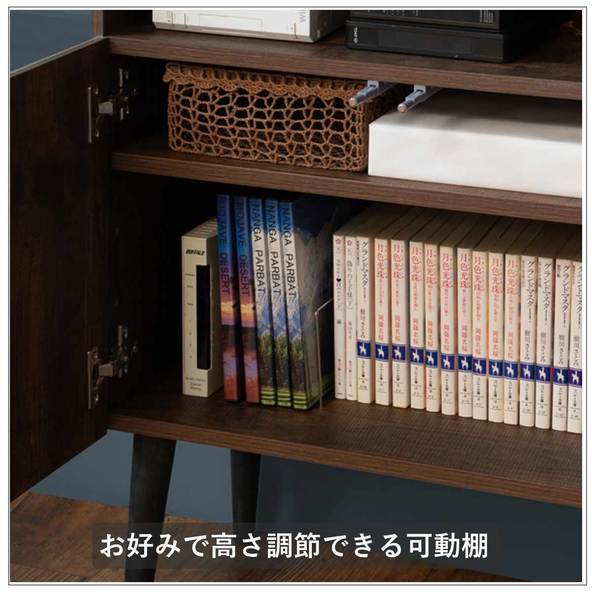 扉内下段の棚板は可動式なので収納物に合わせて高さを調節できます。