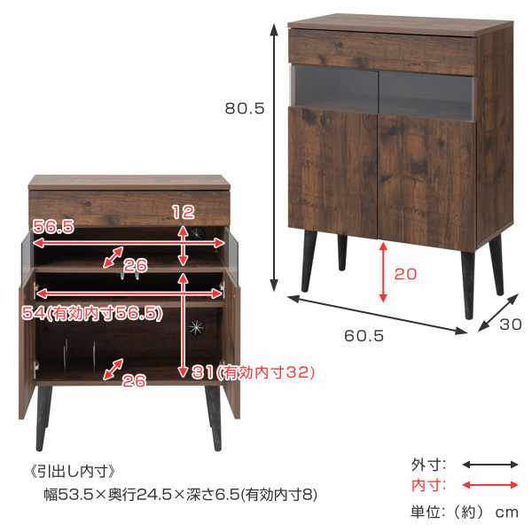 | サイズ | 約 幅60.5×奥行30×高さ80.5(cm) |