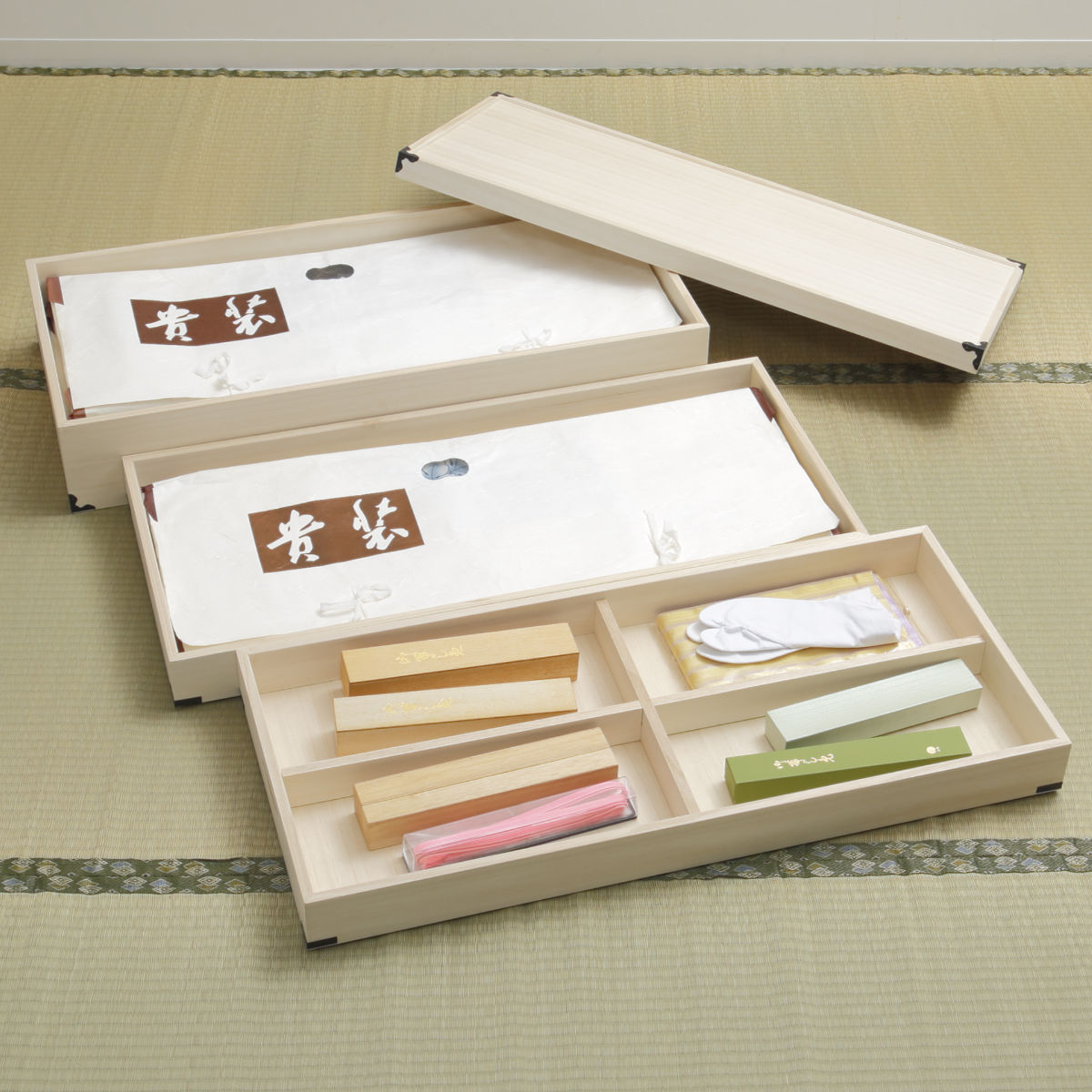 たとう紙に入ったままの着物を収納できるサイズ設計です。着物以外にも、大切な衣類の保管に最適です。