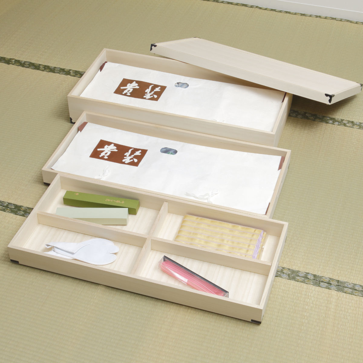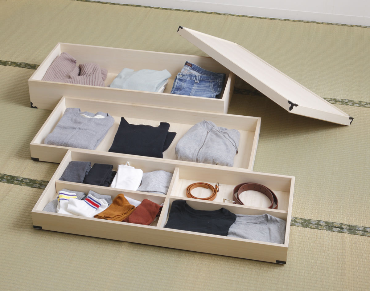タンスの上や押入れの中など、和室にも洋室にもしっかり調和するシンプルなデザインです。