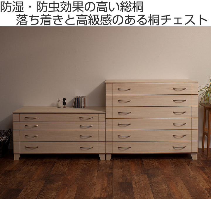 本物の桐ならではの、きめ細かな木目と質感が心地よい桐チェストです。調湿機能をもった桐材は日本の四季に最も合った材質と言われ、環境にもやさしい素材です。防虫効果もあり、安心して収納・保管がすることができます。