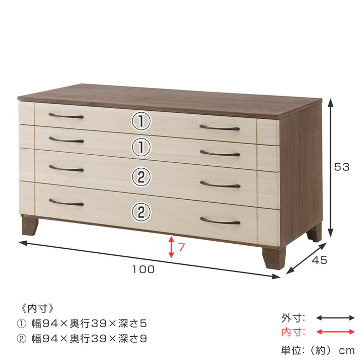 桐 スタイルチェスト 4段 日本製 ツートーン 幅100cm