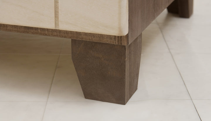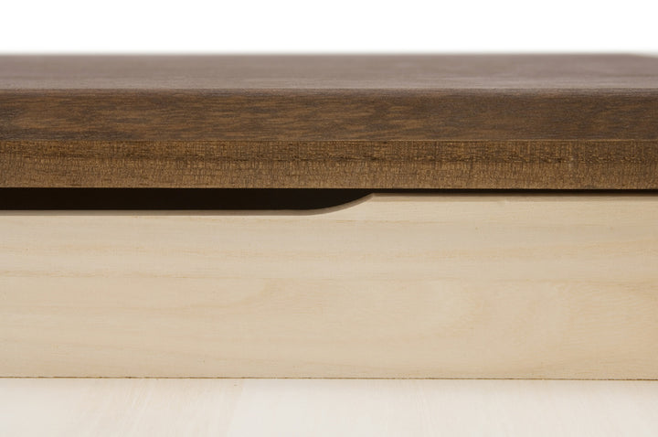 本体は下段に地板を入れ、その他の段にも強度を保つための桟を入れています。通常の桐タンスとは違い重い物を載せられるように、天板は15mm厚の2枚重ねになっているので安心です。