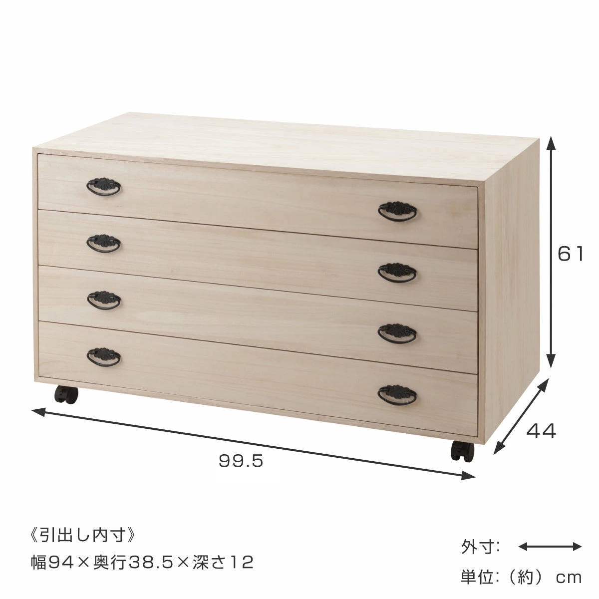桐タンス 幅99.5cm 4段 総桐 日本製 キャスター付