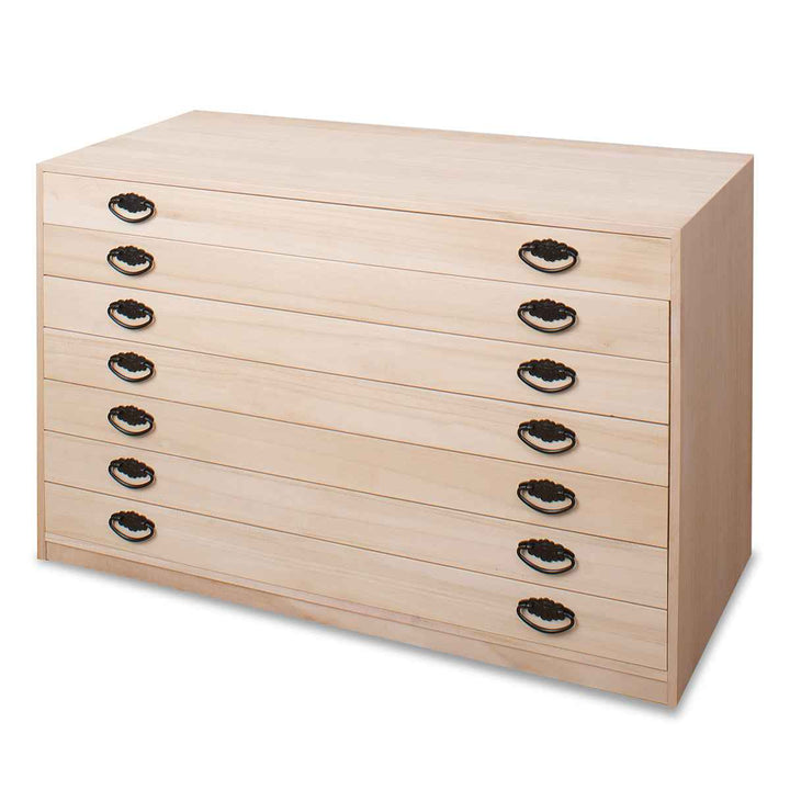 和洋問わずどんなテイストのお部屋にも合うシンプルな桐タンスです。塗装は一切せず、桐の素材をそのまま活かして仕上げています。少し大き目のたとう紙でも折らずに収納できるサイズ感です。