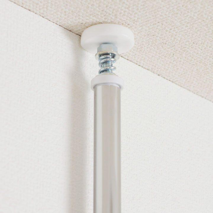 簡単に設置できるつっぱり式 <STEP1> 本体からパイプを伸ばして天井に突っ張り、調節つまみでしっかりと固定します。 |