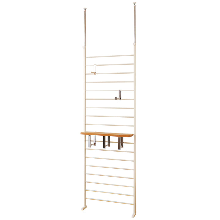突っ張り ラダーラック 幅65cm 棚付 アイボリー 日本製