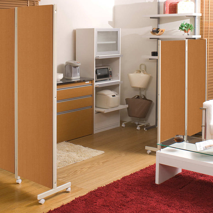 キャスター付きで、女性ひとりでも楽に移動できます。お部屋の間仕切りやレイアウト変更、お掃除の時の移動もスムーズにできます。