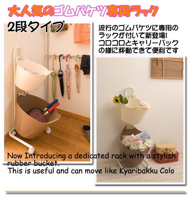 今、流行のゴムバケツに専用のラックが付いて新登場。