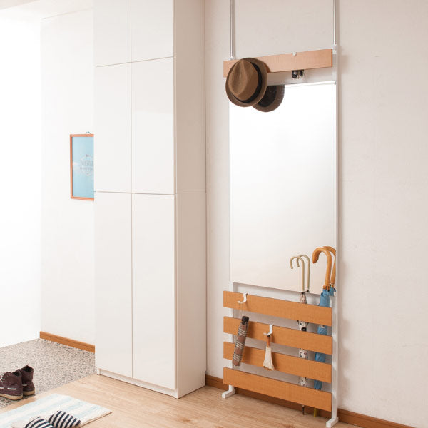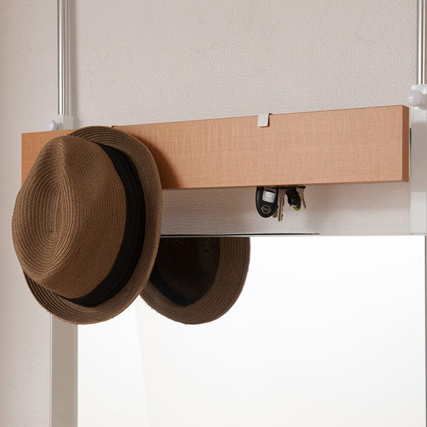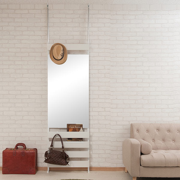 全身チェックできる突っ張り式のミラーです。省スペースで設置できるので、すっきり見せたい玄関や、ワンルームのお部屋にもおすすめです。床と天井に突っ張るだけの簡単設置。壁などに穴をあけることもないので、賃貸のお部屋や引越しの多い方、レイアウトを変えたいときも安心です。上下でしっかり突っ張って設置するので、グラグラせず倒れる心配もありません。