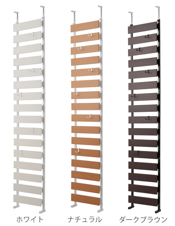 すっきり見せたい玄関や、ワンルームのお部屋にも最適です。壁に穴をあけなくても設置できるので、賃貸のお部屋や引越しが多い方、レイアウトを変えたい時にもおすすめです。床と天井に突っ張って、しっかり設置できるのでグラつかず安心です。
