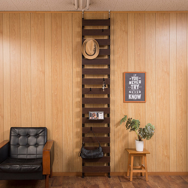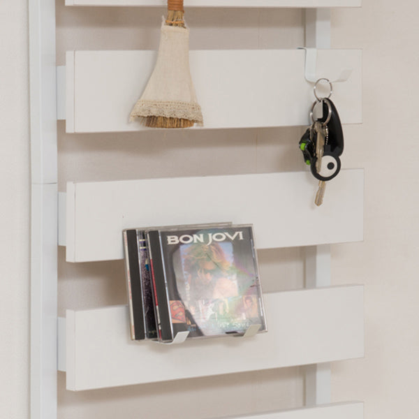 ラダー部分を収納として活用できます。立体的な美しいデザインで、付属のフックで帽子やバッグなどを掛けられます。また、別売りのプレートを設置して小物を置いたり、マガジンラックとしてもお使いいただけます。