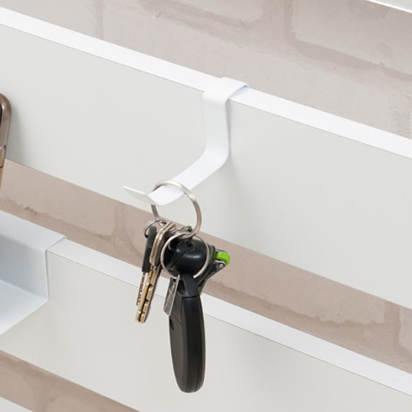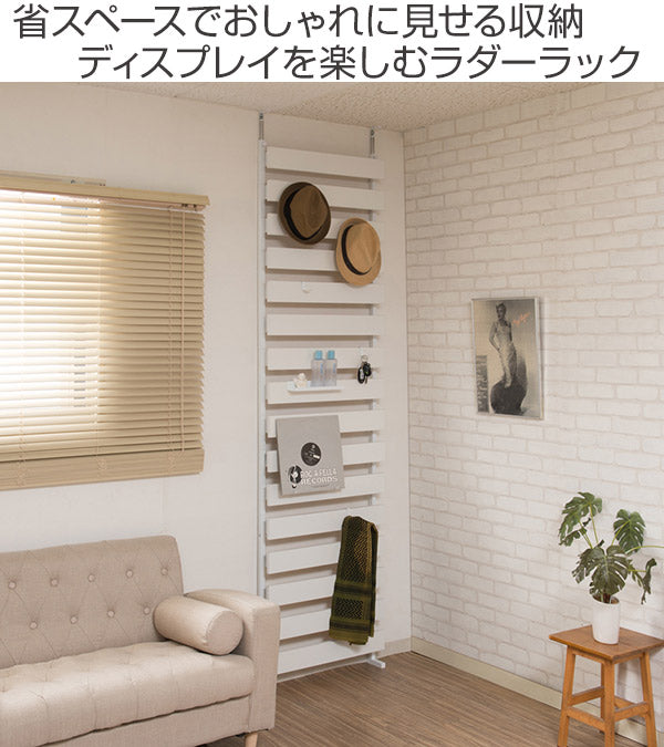 ラダー部分を収納として活用できます。立体的な美しいデザインで、付属のフックで帽子やバッグなどを掛けられます。また、別売りのプレートを設置して小物を置いたり、マガジンラックとしてもお使いいただけます。