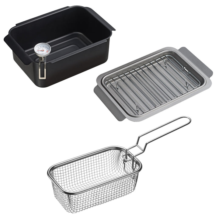 天ぷら鍋4点&揚げ物ざる セット IH対応 温度計付き ポコフリット 角型 ワイド
