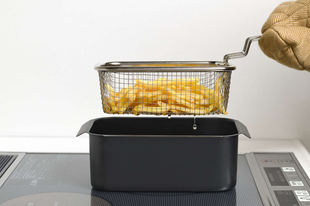 ポテトなど、つかみにくい食材も揚がったタイミングで一気に引き上げることができます。から揚げの二度揚げの際にも、一気に取り出してそのままバットに置け、そのまままた揚げなおすことができます。