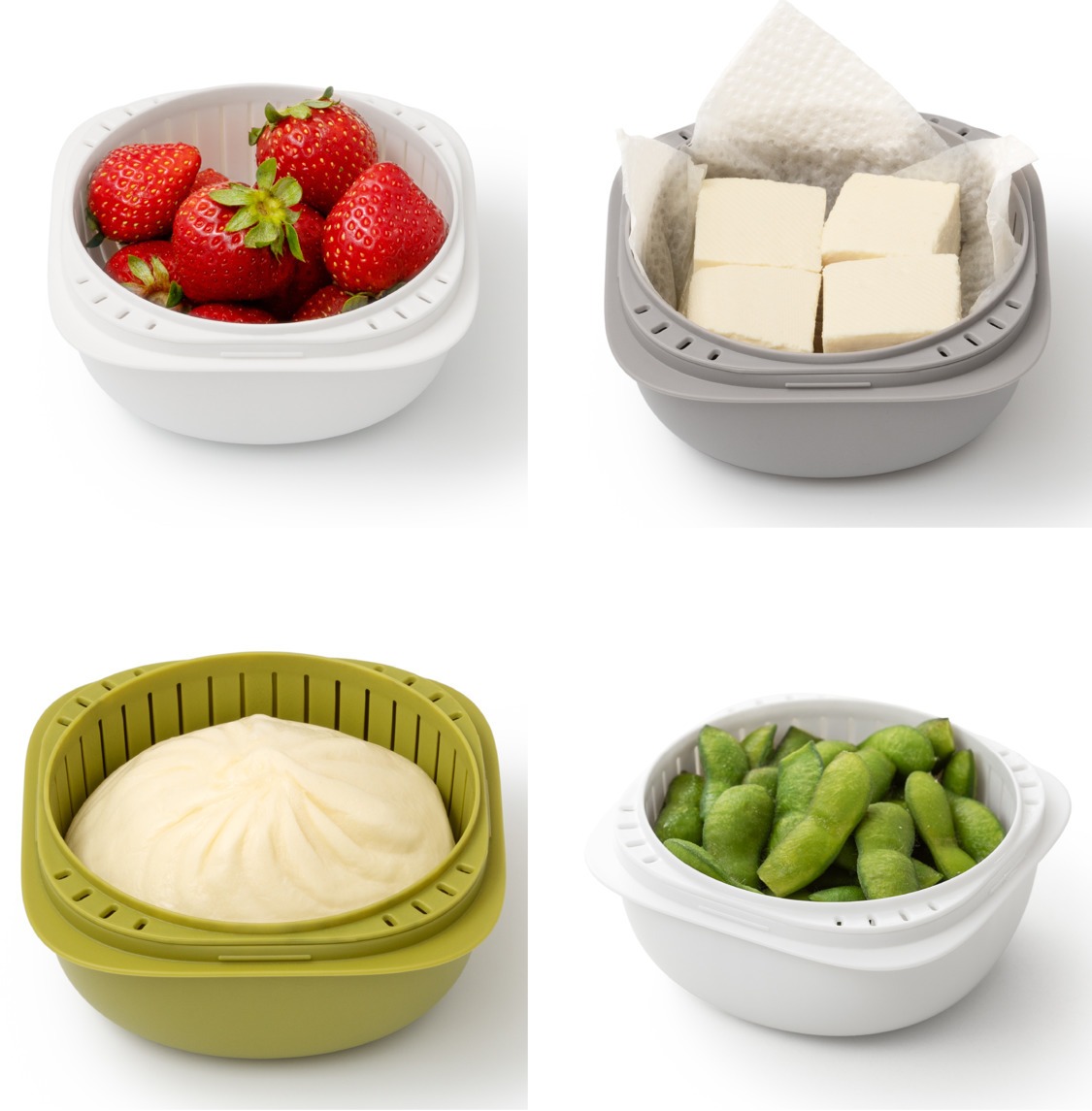 食材の冷蔵保存にはもちろん、冷凍食品の温めや蒸し料理、お弁当のおかず作りなど多用途に活躍します。ちょっと大きめサイズだからこそ、肉まんもピタッと入るサイズです。