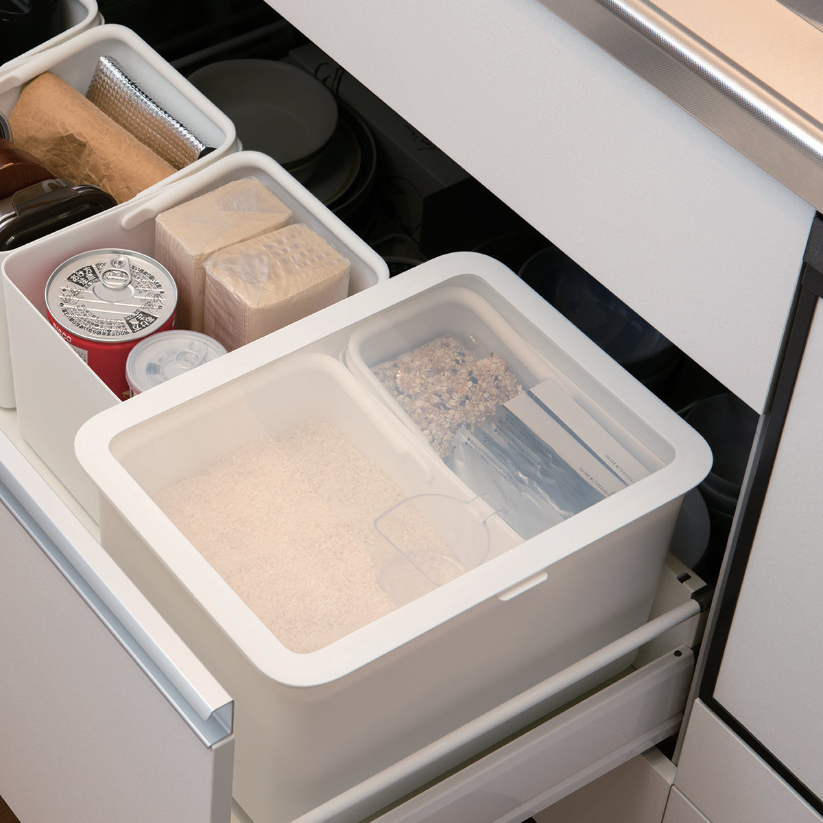 お米以外のストック食材や日用品の保存にもおすすめ。同シリーズ商品と一緒に使えばリビング小物の整理にも大活躍です。幅広い用途に使えるので、新生活を始める方への贈り物にも最適です。