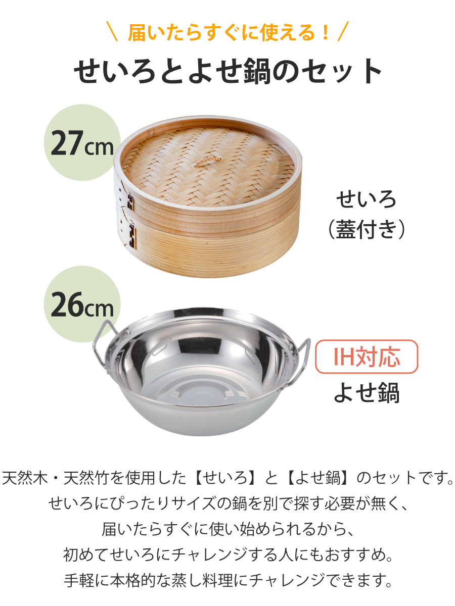 | 内容量 | せいろ:1個 よせ鍋:1個 |